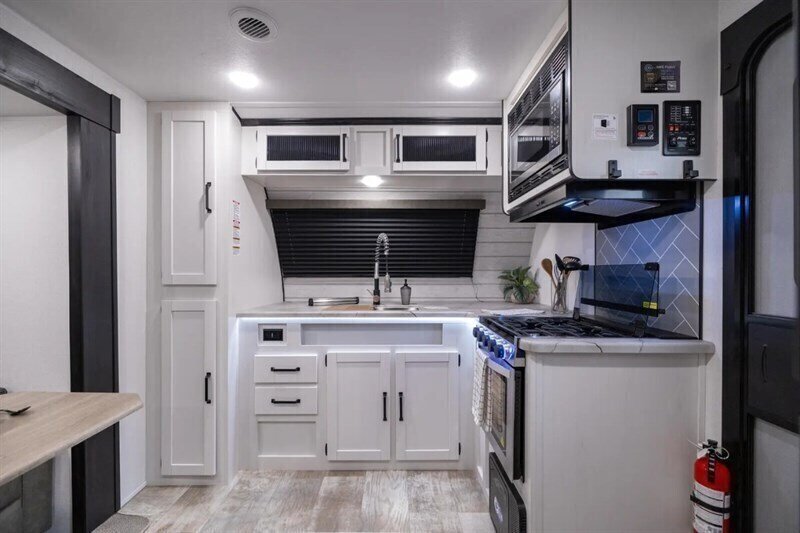 NEW (left over) 2024 Palomino Puma 22FKQ - Front Kitchen with big front windshield, lots of counter space. Walk around queen bed, electric fireplace, furnace, a/c, large 12vdc refrigerator and freezer outdoor kitchen with 18in cast iron griddle and min-fridge. Solar prep. Priced to MOVE! stop by and check this unit out. Select Palomino Puma TTs on our lot are up to 40% off MSRP. More information available at www.roadhousecamper.com or by calling 570-226-4111 ask for Sales :)