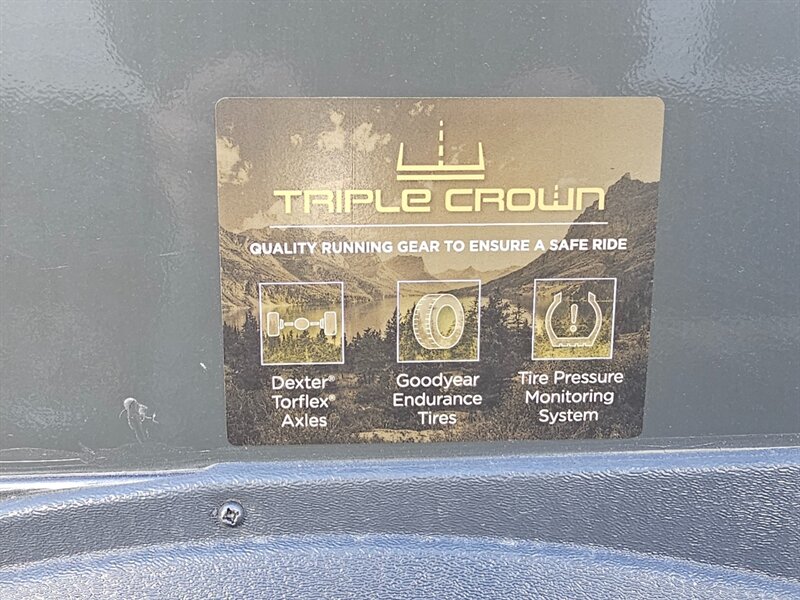 : Dexter Torflex torsion axles and nitrogen-filled Goodyear Endurance tires with balancing beads and tire pressure monitoring.