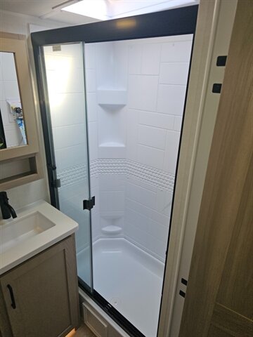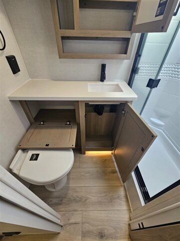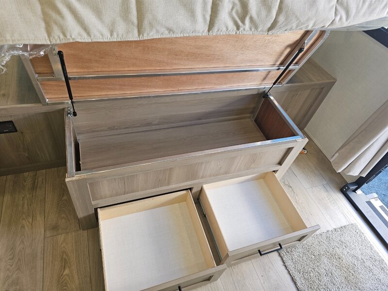 Comfort & Convenience: A 15,000 BTU air conditioner, power awning, electric fireplace (where available), and heated holding tanks for all-season camping.