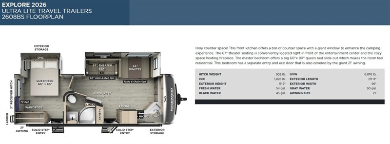 2026 FOREST RIVER ROCKWOOD 2608BS ULTRA LITE Travel Trailer